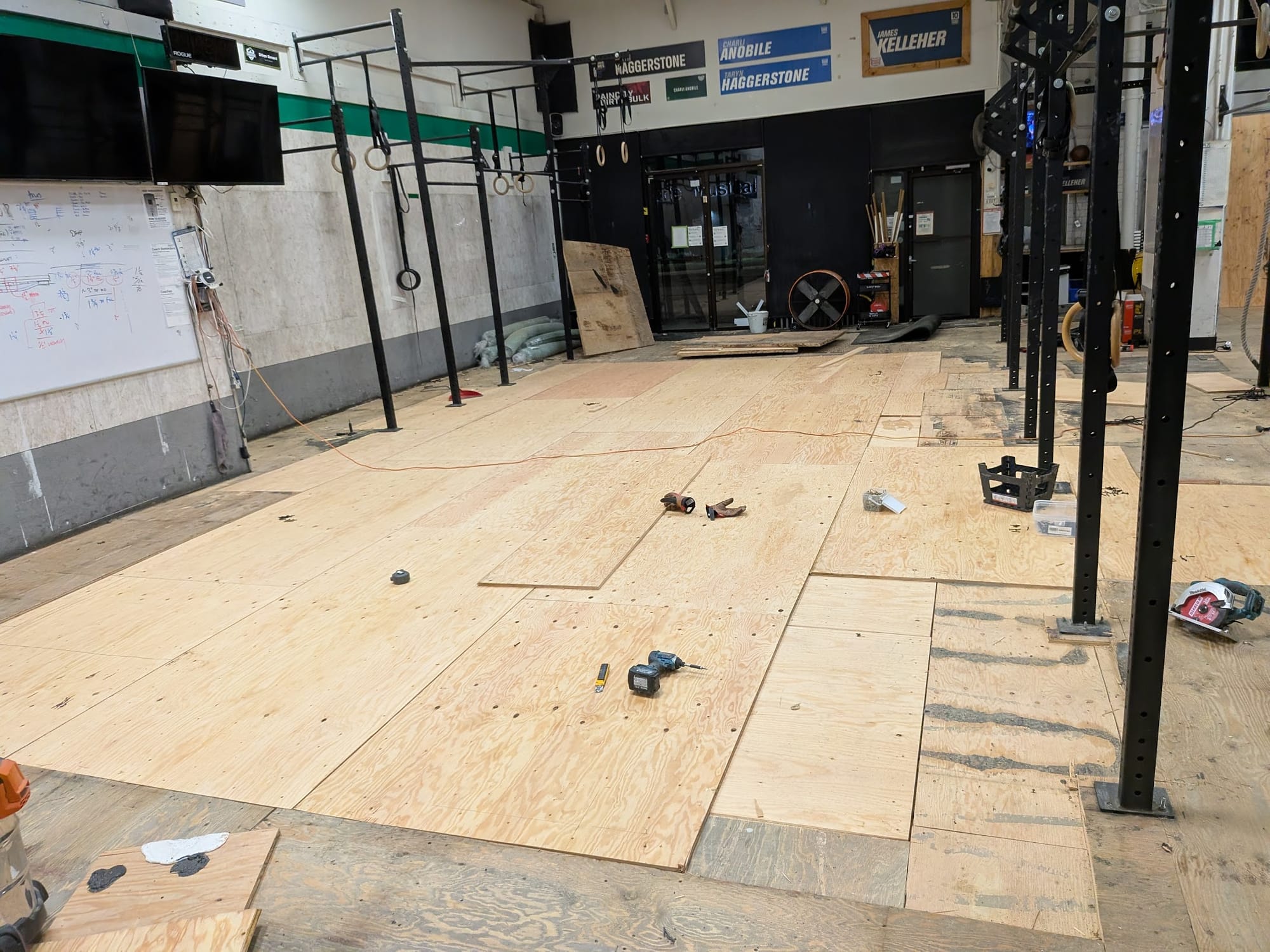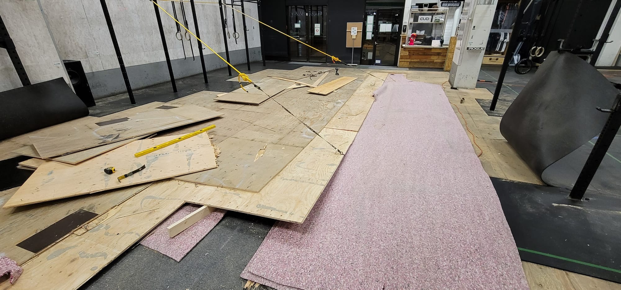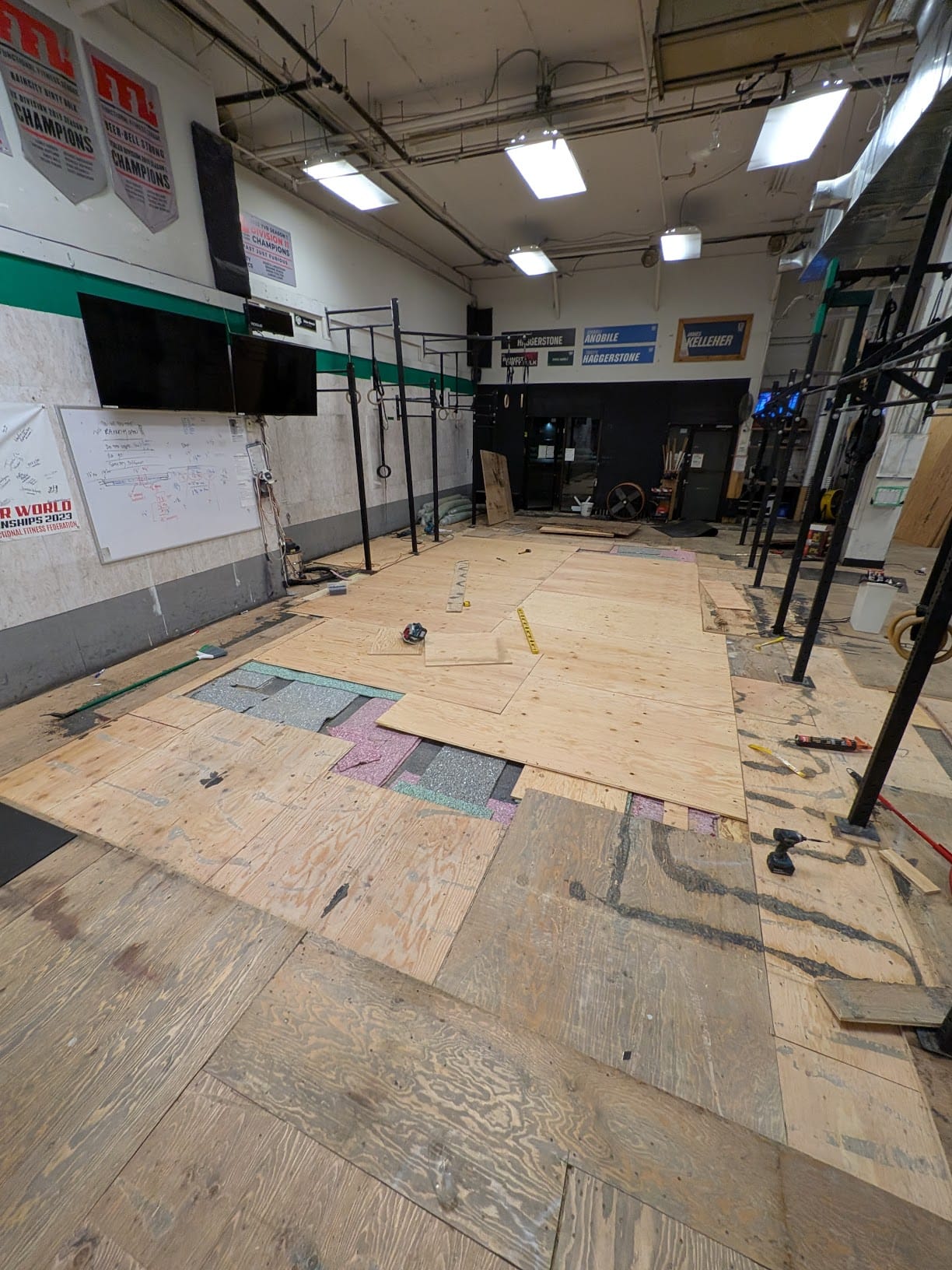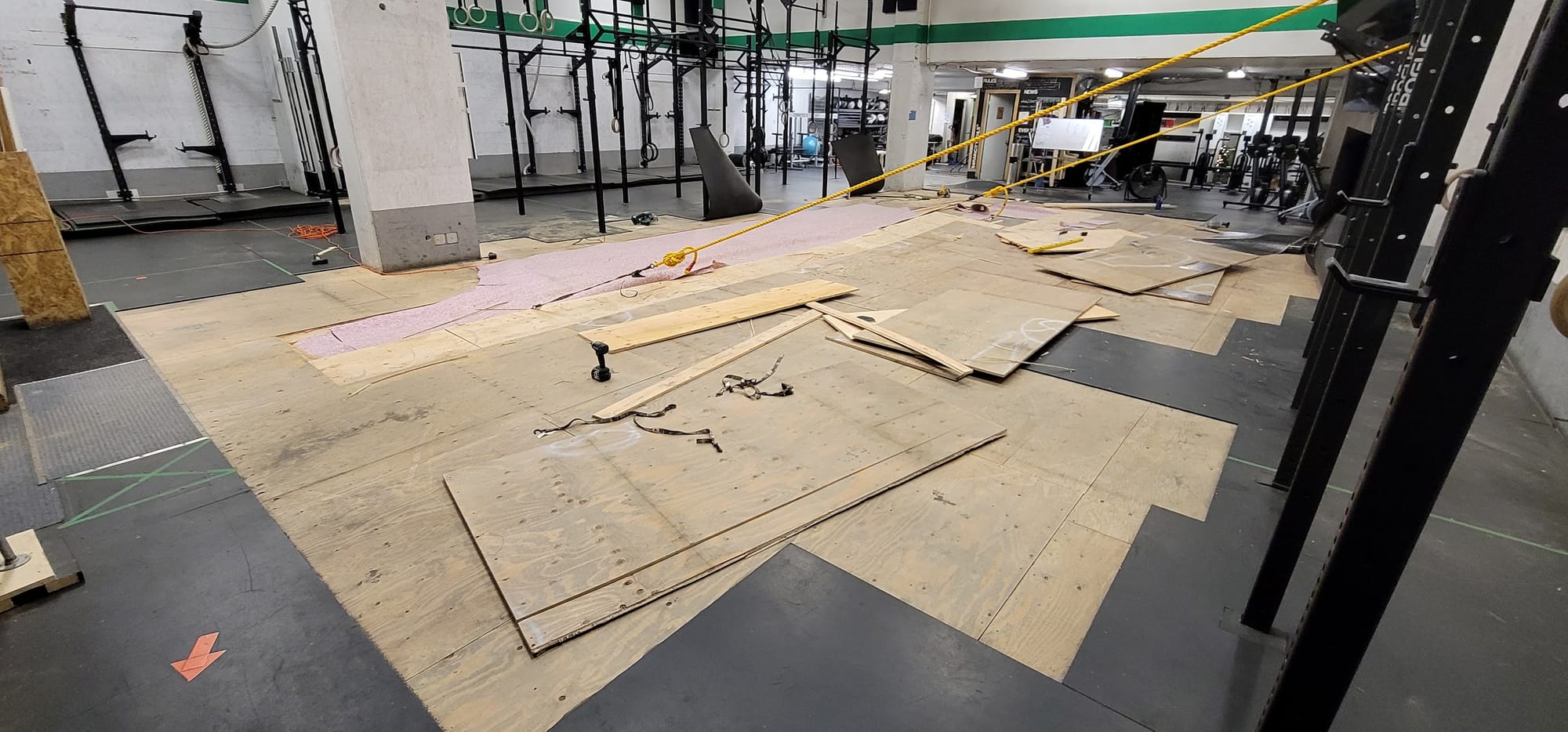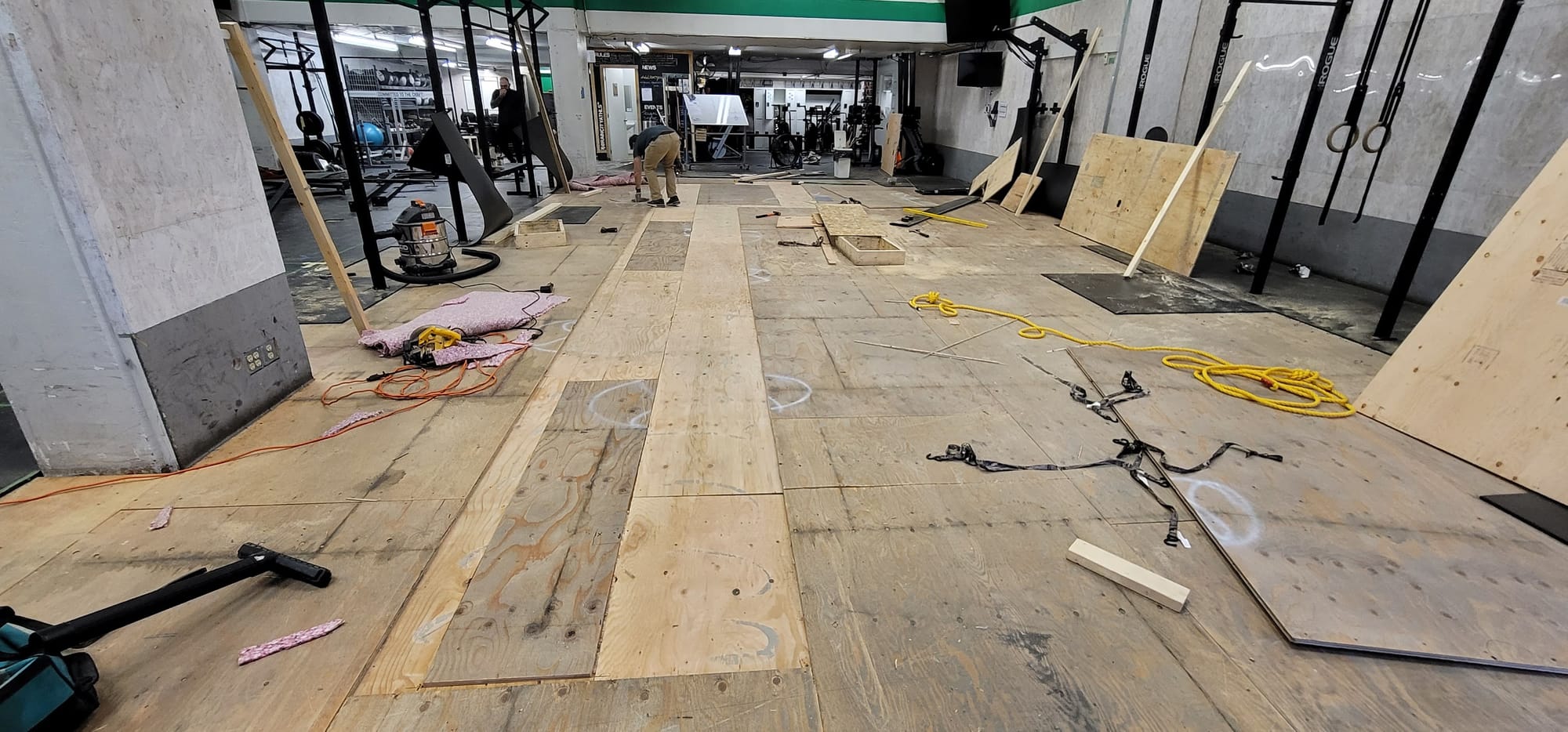And my first attempt at a subfloor across a whole gym.